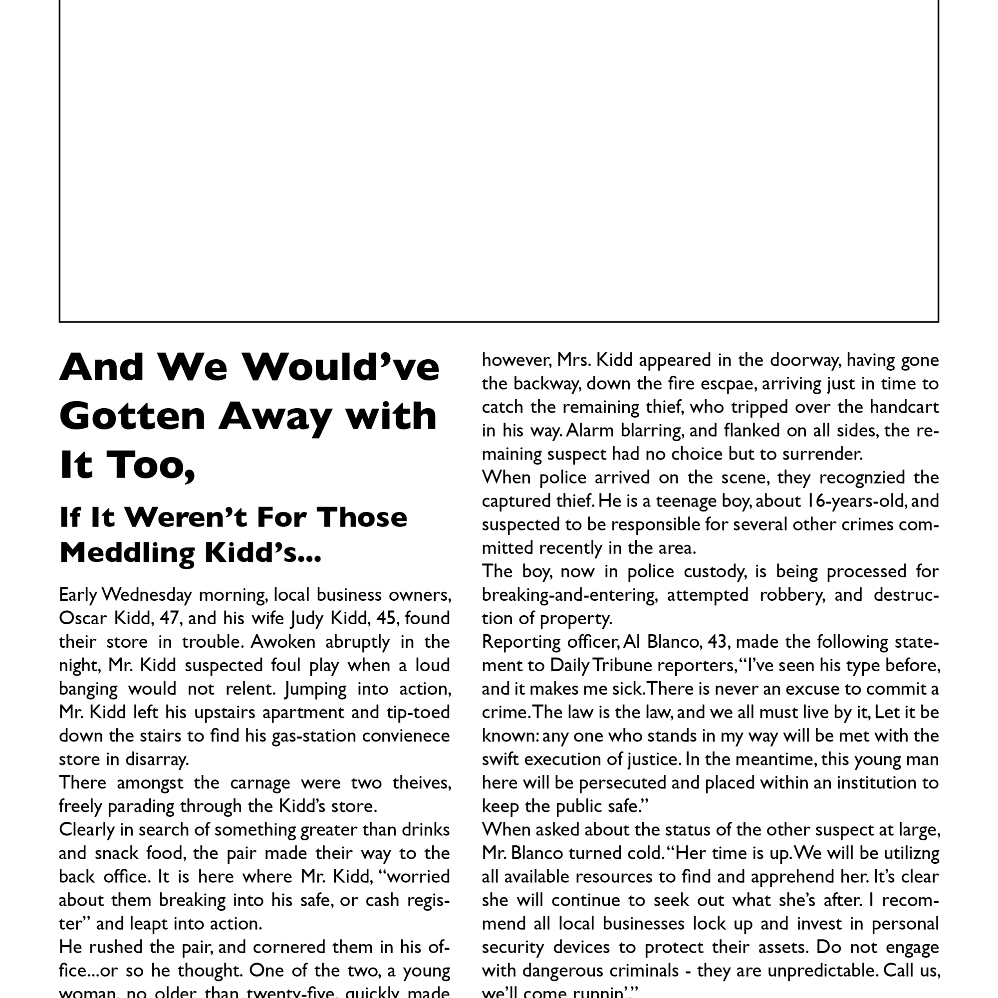 In the end, my teammates and I were unable to finish the storyline of the game, but we were able to create a narrative-driven prologue and first chapter of our story, introducing players to their protagonist and the moral conundrum they are faced with.