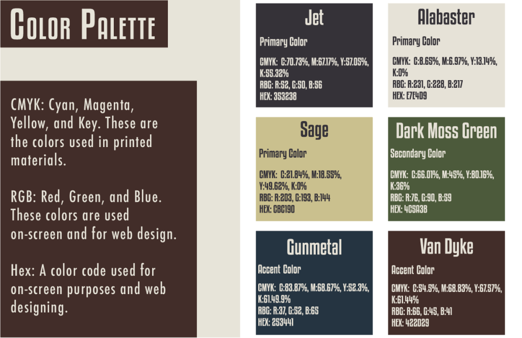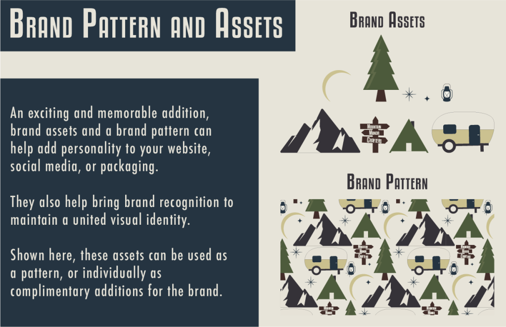 Included in the Brand Package is: the Logo Design and full Logo Suite; a custom Color Palette; custom Typography; a noted “incorrect usage” slide for guided application; and custom Brand Assets and Pattern for any and all digital and printed applications.
