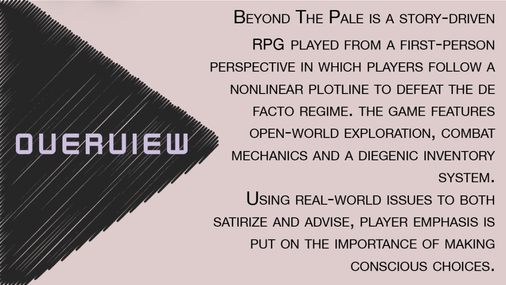 Beyond The Pale is currently a work in progress/concept for an open-world nonlinear RPG.